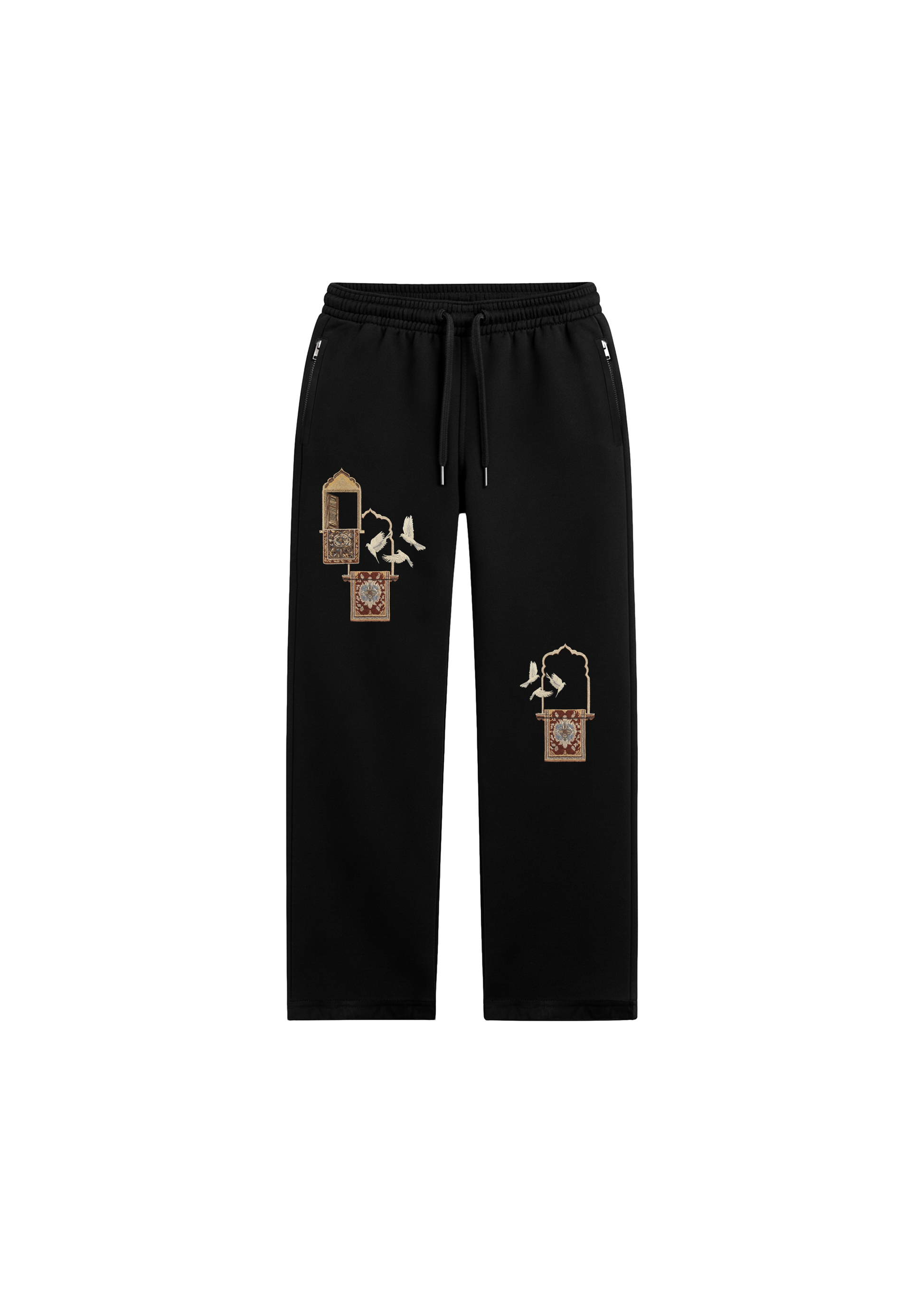 Inspired by Moroccan and Middle Eastern architecture, this design frames delicate birds in flight between ornate arches and patterned balconies. The windows represent community. The birds represent freedom. Together they tell a story of belonging without limitation.